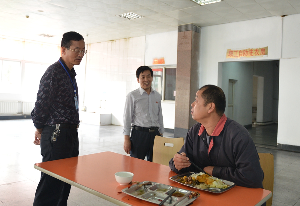 在四樓會(huì)議室,劉紀(jì)明簡(jiǎn)要介紹了此次檢查的意義及方式方法。隨后,該礦工會(huì)主席傅軍就“兩堂一舍”建設(shè)情況從以下四個(gè)方面向檢查組作了專題匯報(bào),一是強(qiáng)化機(jī)制保障,在體制上更加完善,全力推動(dòng)“兩堂一舍”監(jiān)管制度化。在“兩堂一舍”管理中,重點(diǎn)抓好“四個(gè)強(qiáng)化”,即強(qiáng)化物業(yè)管理科的主體責(zé)任;強(qiáng)化基層單位黨支部書記職工宿舍第一責(zé)任者的管理責(zé)任;強(qiáng)化礦機(jī)關(guān)職能部門的督導(dǎo)監(jiān)督責(zé)任;強(qiáng)化礦職工生活監(jiān)督委員會(huì)的監(jiān)督視察責(zé)任。通過(guò)多渠道建立長(zhǎng)效機(jī)制,推進(jìn)了“兩堂一舍”管理標(biāo)準(zhǔn)化。二是強(qiáng)化環(huán)境整治,在民生上多投入,全力推進(jìn)“兩堂一舍”管理標(biāo)準(zhǔn)化。今年4、5月份,礦投入專項(xiàng)資金,對(duì)職工食堂、浴池進(jìn)行升級(jí)改造,改善了職工生活環(huán)境。同時(shí),在當(dāng)前嚴(yán)峻的經(jīng)營(yíng)形勢(shì)下,礦不斷加大民生工程投入力度,繼續(xù)為職工發(fā)放通勤車票、為職工宿舍配備閉路電視機(jī)頂盒、更新凈水系統(tǒng)等,職工生活質(zhì)量穩(wěn)中有升。三是強(qiáng)化激勵(lì)約束,在監(jiān)管上動(dòng)真格,全力推動(dòng)“兩堂一舍”考核常態(tài)化。礦通過(guò)采取加強(qiáng)內(nèi)部管理、堅(jiān)持督查通報(bào)、實(shí)行掛鉤考核、定期評(píng)先評(píng)優(yōu)等多種措施,對(duì)“兩堂一舍”考核實(shí)現(xiàn)了常態(tài)化。四是強(qiáng)化主動(dòng)意識(shí),在服務(wù)上做文章,全力推動(dòng)“兩堂一舍”服務(wù)規(guī)范化。礦從主動(dòng)增強(qiáng)服務(wù)意識(shí)、強(qiáng)化服務(wù)理念灌輸?shù)确矫嫒胧?,提出了“有?wèn)題找物業(yè)”、“有困難找書記”等理念,全力為職工解難題,辦實(shí)事,較好地贏得了全礦職工群眾的理解和信任。