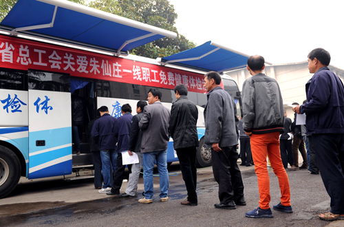 10月13日,安徽省總工會(huì)組織醫(yī)務(wù)人員來(lái)到朱仙莊礦,開(kāi)展關(guān)愛(ài)一線職工免費(fèi)上門送體檢活動(dòng)。