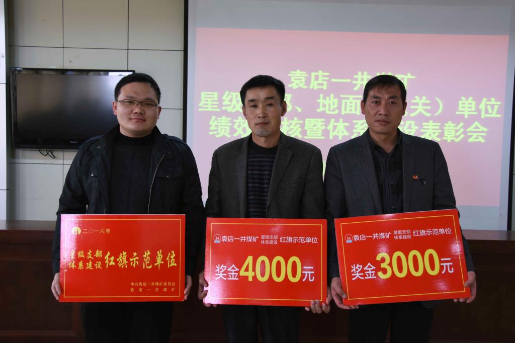 日前,袁店一礦召開星級支部暨體系建設(shè)表彰會(huì),授予綜采二區(qū)黨支部、運(yùn)輸區(qū)黨支部“星級支部暨體系建設(shè)紅旗示范單位”稱號,頒發(fā)獎(jiǎng)牌和獎(jiǎng)金;辦公室為月度績效考核優(yōu)勝單位,市場化工資上浮10%(如圖)。今年以來,該礦黨委通過黨員責(zé)任區(qū)、黨員爭星當(dāng)先鋒、黨員身邊無事故等貼近基層單位實(shí)際的特色黨建品牌,充分發(fā)揮“三個(gè)作用”,讓基層黨建工作彰顯出旺盛的生命力。