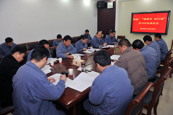 12月9日,淮選廠召開“講看齊,見行動”學(xué)習(xí)討論動員會,副總以上廠領(lǐng)導(dǎo),黨群工作部、紀(jì)委等職能科室人員參加了會議。