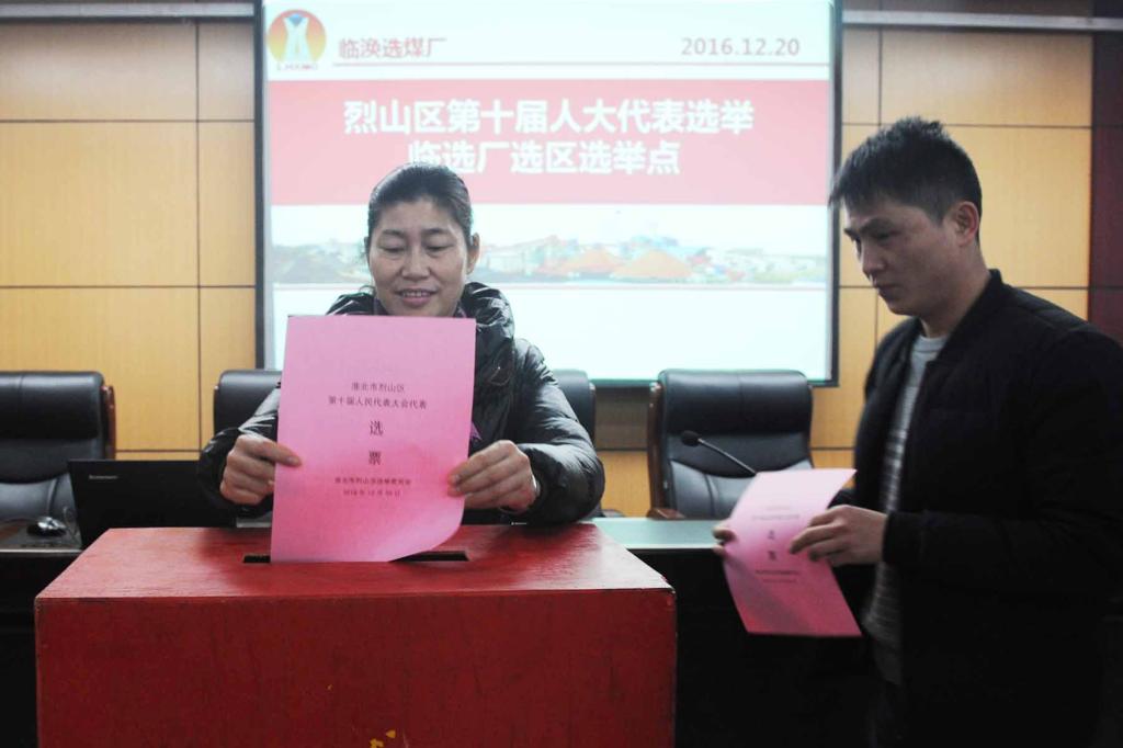 12月20日上午,烈山區(qū)第十屆人大代表換屆選舉工作在臨渙選煤廠進(jìn)行民主選舉。該廠2000多名選民分別在基層車間、分廠、辦公樓及社區(qū)居委會等16個選舉點(diǎn),依法行使民主權(quán)利,為自己滿意人大代表投下了神圣的一票。圖為該廠職工正在投票選舉人大代表。(責(zé)編:徐成貴)