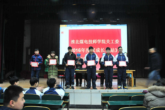 12月21日,淮北煤電技師學(xué)院關(guān)工委召開2016年度“成長(zhǎng)驛站”征文表彰大會(huì)。這次征文比賽評(píng)選出13名一等獎(jiǎng),26名二等獎(jiǎng),49名三等獎(jiǎng),88名獲獎(jiǎng)同學(xué)在會(huì)上受到隆重表彰。該學(xué)院希望更多同學(xué)積極參與到“成長(zhǎng)驛站”的各項(xiàng)活動(dòng)中去,不斷健康成長(zhǎng),取得優(yōu)異成績(jī)。