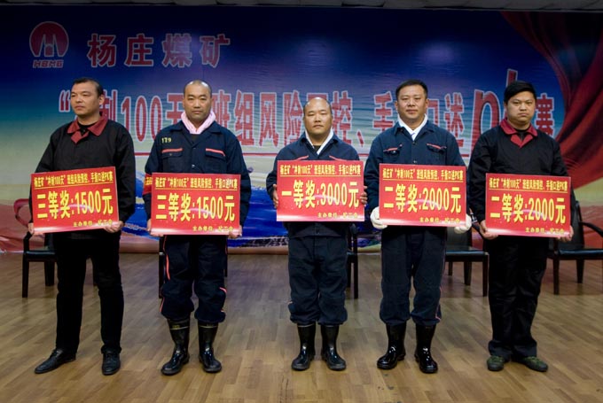 最后,淮北礦業(yè)工會(huì)領(lǐng)導(dǎo)和該礦礦長(zhǎng)李遵明、礦黨委書(shū)記楊朝風(fēng)為分獲一、二、三等獎(jiǎng)的班組頒了獎(jiǎng)。