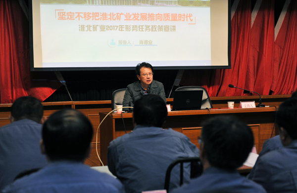 在該廠四樓會議室,來自廠各條戰(zhàn)線上的100多名干部職工認真聆聽淮北礦業(yè)宣講團成員、煤質(zhì)運銷處黨委書記肖德業(yè)作的宣講報告。他運用大量詳實的數(shù)據(jù)和資料,結(jié)合當前國際、國內(nèi)經(jīng)濟形勢、煤炭市場狀況等,從“2016年工作成效和經(jīng)驗啟示”、“集團公司面臨的形勢和任務(wù)”、“2017年政策解讀”、“落實2017年工作會議精神要求”四個方面進行了深入淺出的講解,使與會干部職工對當前淮北礦業(yè)發(fā)展形勢有了更加深入的理解和認識。報告既有理論深度,又有現(xiàn)實針對性,既深刻精辟,又通俗易懂,既傳遞了壓力,又鼓舞了士氣,受到了職工的好評。
