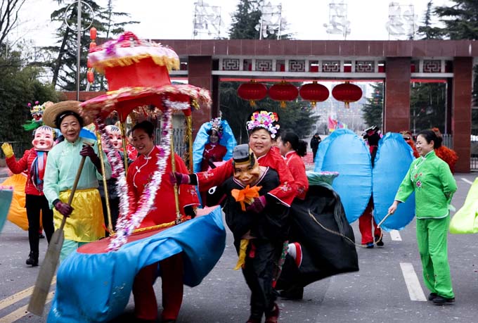 春節(jié)期間,楊莊礦在工人村體育廣場開展了舞龍、舞獅、劃旱船、騎毛驢、推花車、豬八戒背媳婦、斗雞等豐富多彩的活動,使礦區(qū)職工享受了一場別具特色的節(jié)日文化大餐。
