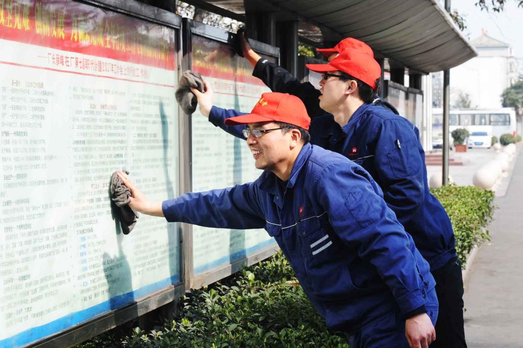 圖3為3月3日下午,志愿者們參加義務保潔勞動。