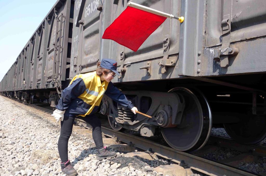 “三八”婦女節(jié)當(dāng)天,淮北礦業(yè)“青年文明號(hào)—鐵運(yùn)處臨渙機(jī)輛段女子列檢班組”依然堅(jiān)守崗位,默默奉獻(xiàn)。該段女子列檢員們各自忙碌著,有條不紊的排查檢修每一臺(tái)車輛,確保礦區(qū)煤炭運(yùn)輸安全、高效。圖為:該段一名青年女子列檢員正在檢查車輛運(yùn)用狀態(tài)。(責(zé)編:徐成貴)