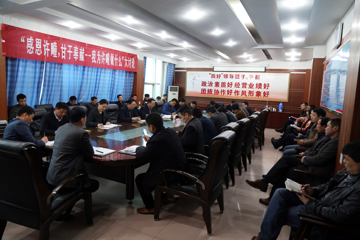 3月22日上午,許疃礦在黨委會(huì)議室,一場(chǎng)催人奮進(jìn)的感恩討論會(huì)如期舉行?!案卸髟S疃,甘于奉獻(xiàn),我為許疃礦做什么?”圍繞這一感恩主題,礦領(lǐng)導(dǎo)、基層單位黨政正職、班隊(duì)長(zhǎng)代表參加了大討論。