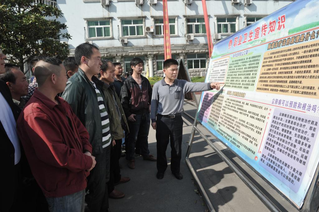圖為祁南礦安全監(jiān)察處工作人員為職工講解職業(yè)健康、衛(wèi)生知識(shí)。