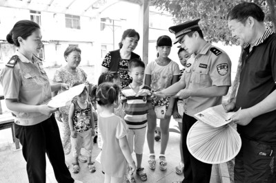 7月6日,淮北市公安局朔里派出所民警在向社區(qū)居民解讀治安防范宣傳材料。暑假來(lái)臨,淮北礦業(yè)集團(tuán)朔里礦業(yè)針對(duì)老礦區(qū)留守兒童多、空巢老人多的情況,聯(lián)合駐地派出所深入社區(qū)宣講消防安全、居家安全、出行安全、自我保護(hù)、應(yīng)急呼救等知識(shí),增強(qiáng)留守兒童、老人的自防自救能力和安全防范意識(shí)。 喬時(shí)慶 周勇 攝