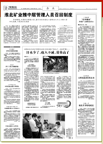 據(jù)介紹,對被召回的中層管理人員,淮北礦業(yè)集團將不搞“一刀切”、不搞“一棍子打死”,而是分類指導(dǎo)、區(qū)別對待,通過警示教育、組織談話、教育培訓(xùn)、跟蹤考察等方式,使其經(jīng)過“回爐加鋼”、“維修過關(guān)”后,投入新的工作。 (王敬華)