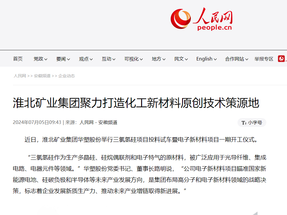 近日,淮北礦業(yè)集團(tuán)華塑股份舉行三氯氫硅項(xiàng)目投料試車暨電子新材料項(xiàng)目一期開工儀式。