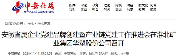 11月8日,安徽省屬企業(yè)黨建品牌創(chuàng)建暨產(chǎn)業(yè)鏈黨建工作推進(jìn)會(huì)在淮北礦業(yè)集團(tuán)華塑股份公司召開。會(huì)議深入學(xué)習(xí)貫徹習(xí)近平總書記考察安徽重要講話精神,認(rèn)真學(xué)習(xí)貫徹習(xí)近平總書記關(guān)于黨的建設(shè)的重要思想,總結(jié)近年來(lái)省屬企業(yè)黨建品牌創(chuàng)建工作做法成效,部署推進(jìn)產(chǎn)業(yè)鏈黨建工作,進(jìn)一步推動(dòng)黨建工作與生產(chǎn)經(jīng)營(yíng)深度融合,切實(shí)以高質(zhì)量黨建引領(lǐng)保障省屬企業(yè)高質(zhì)量發(fā)展。