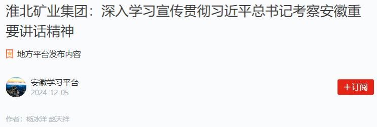 “我們將扎實(shí)推動(dòng)習(xí)近平總書記考察安徽重要講話精神進(jìn)基層、入人心,把重要講話精神全面滲透在具體工作中,把學(xué)習(xí)成效落實(shí)到實(shí)際行動(dòng)上?!被幢钡V業(yè)集團(tuán)黨委宣傳部相關(guān)負(fù)責(zé)人說。