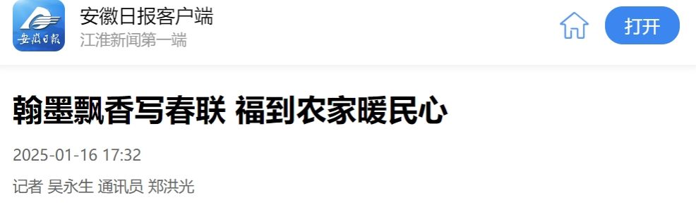 妙筆生花送祥瑞,翰墨飄香迎新春。農(nóng)歷蛇年春節(jié)即將到來之際,1月15日,淮北礦業(yè)集團(tuán)工會組織礦區(qū)書法家深入鄉(xiāng)村振興定點(diǎn)幫扶鄉(xiāng)村——濉溪縣鐵佛鎮(zhèn)周圩村開展義務(wù)寫春聯(lián)活動。