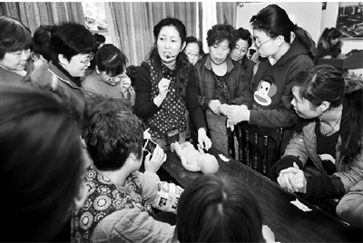 2月29日,在安徽淮北礦業(yè)集團(tuán)淮北選煤廠社區(qū)中心內(nèi),保育專家正在為該廠離崗、內(nèi)退女工講解新生兒護(hù)理知識(shí)。面對煤炭市場下行壓力,淮北選煤廠一些技術(shù)含量低、收入少的女工提前離開崗位。該廠工會(huì)積極為她們搭建創(chuàng)業(yè)就業(yè)學(xué)習(xí)平臺(tái),開展了“學(xué)創(chuàng)業(yè)技能,做轉(zhuǎn)型職工”月嫂培訓(xùn)活動(dòng)。韓曉兵 攝