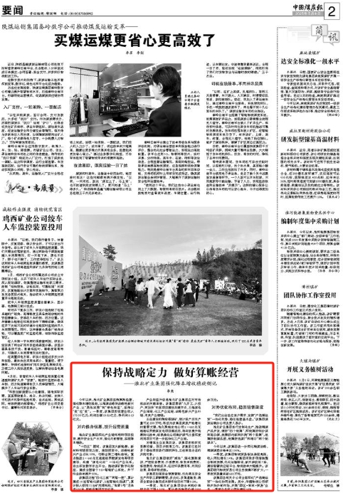 該集團(tuán)加強(qiáng)資金預(yù)算管控,優(yōu)先滿足安全生產(chǎn)和職工薪酬需要;多元化、多渠道融資,確保全面綜合融資成本較年初目標(biāo)下降0.2%。