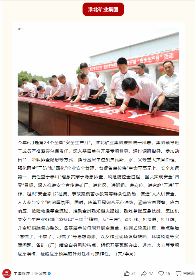 今年6月是第24個(gè)全國(guó)“安全生產(chǎn)月”?;幢钡V業(yè)集團(tuán)按照統(tǒng)一部署,集團(tuán)領(lǐng)導(dǎo)班子成員嚴(yán)格落實(shí)包保責(zé)任,深入基層單位開展專項(xiàng)督導(dǎo)。通過調(diào)研指導(dǎo)、參加動(dòng)員會(huì)、帶隊(duì)排查隱患等方式,指導(dǎo)基層單位聚焦瓦斯、水、火等重大災(zāi)害治理,強(qiáng)化雨季“三防”和“四化”企業(yè)安全管理,督促各單位將“生命至高無上、安全永遠(yuǎn)第一、責(zé)任重于泰山”理念貫穿于隱患排查、風(fēng)險(xiǎn)防控全過程,堅(jiān)決實(shí)現(xiàn)安全“四零”目標(biāo)。深入推進(jìn)安全宣傳進(jìn)礦廠、進(jìn)科區(qū)、進(jìn)班組、進(jìn)崗位、進(jìn)家庭“五進(jìn)”工作,組織“安全家書”征集、事故案例警示教育等群眾性活動(dòng),營(yíng)造“人人講安全、人人參與安全”的濃厚氛圍,同時(shí),統(tǒng)籌開展綜合示范演練,涵蓋災(zāi)害預(yù)警、應(yīng)急響應(yīng)、搶險(xiǎn)救援等全流程,推動(dòng)全員熟知避災(zāi)路線、熟練掌握應(yīng)急技能。集團(tuán)機(jī)關(guān)安全生產(chǎn)業(yè)務(wù)部門堅(jiān)持以“三鐵”精神,反“三違”、查紅線、打造假、掛紅牌,并全程跟蹤督辦整改。各基層單位每周開展全覆蓋、拉網(wǎng)式隱患排查,重點(diǎn)整治“看慣了、干慣了、習(xí)慣了”等思想隱患,以及作業(yè)現(xiàn)場(chǎng)設(shè)備缺陷、環(huán)境風(fēng)險(xiǎn)等實(shí)際問題。各礦(廠)結(jié)合自身風(fēng)險(xiǎn)特點(diǎn),組織開展瓦斯突出、透水、火災(zāi)等專項(xiàng)應(yīng)急演練,檢驗(yàn)應(yīng)急預(yù)案的針對(duì)性和可操作性。(文/李亮)