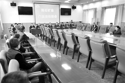 ?安徽淮北礦業(yè)集團(tuán)朔石礦業(yè)公司將街道門面房向社會(huì)公開招租,使臨街房產(chǎn)比以往增值一倍多。圖為公開招租現(xiàn)場。喬時(shí)慶 攝