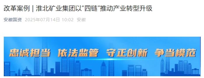 安徽國(guó)有企業(yè)聚焦增強(qiáng)核心功能、提升核心競(jìng)爭(zhēng)力,扎實(shí)推進(jìn)國(guó)有企業(yè)改革深化提升行動(dòng),更好發(fā)揮科技創(chuàng)新、產(chǎn)業(yè)控制、安全支撐作用,涌現(xiàn)出了一批具有示范帶動(dòng)作用的改革成果和實(shí)踐案例。近期,“安徽國(guó)資”將陸續(xù)推出系列報(bào)道。今天為大家?guī)?lái)《淮北礦業(yè)集團(tuán)以“四鏈”推動(dòng)產(chǎn)業(yè)轉(zhuǎn)型升級(jí)》。