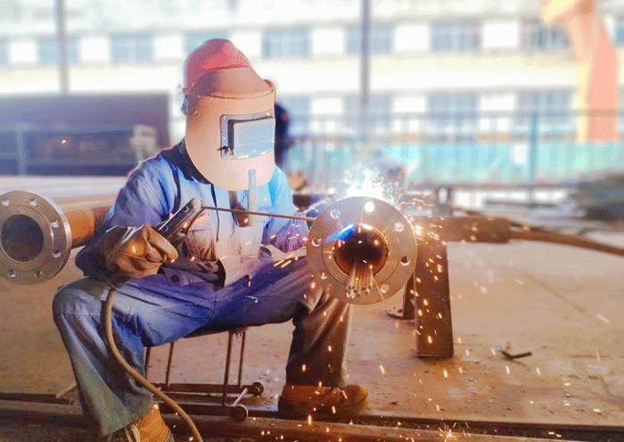 第二天下午,當(dāng)最后一道焊口收弧,她摘下面罩,由于長時間蹲坐姿勢,一下癱坐在地上。