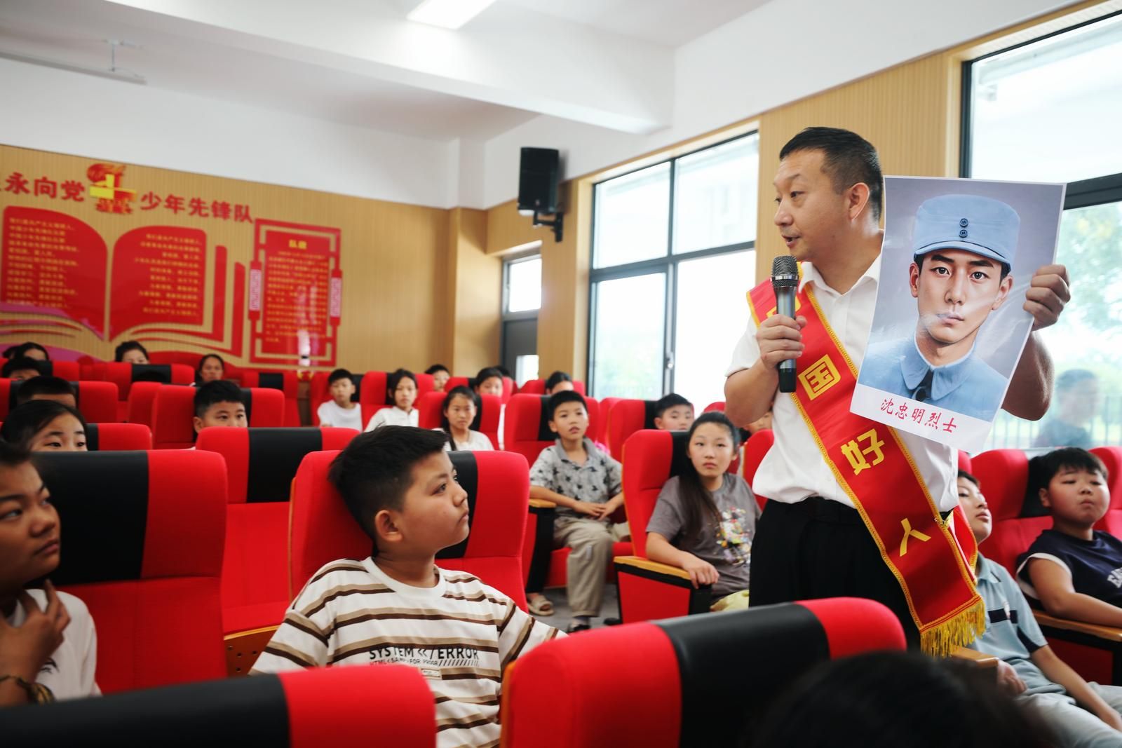 周楊用生動(dòng)的語言還原了沈忠明烈士投身革命、奮勇抗敵的光輝一生,讓同學(xué)們?cè)隈雎犞姓媲懈惺艿礁锩容叀叭f眾一心保障國(guó)家獨(dú)立、百折不撓爭(zhēng)取民族解放”不畏犧牲的崇高精神。