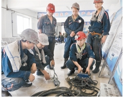 近日,在安徽淮北礦業(yè)集團(tuán)袁店二礦,礦工們觀看“五小“實(shí)用技術(shù)成果巡展。黃世鵬 孫健 攝
