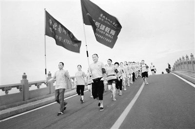 ▲近年來,安徽省淮北市對淮北礦業(yè)集團煤礦塌陷區(qū)進行綜合治理,建成南湖濕地公園。2016年8月8日是第八個全民健身日,南湖濕地公園吸引了當?shù)亟賯€徒步群。魏玉東 攝