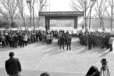 3月4日,由合肥市總工會(huì)、淮北市總工會(huì)和淮北礦業(yè)集團(tuán)工會(huì)聯(lián)合舉辦的“工會(huì)組織服務(wù)產(chǎn)能過(guò)剩企業(yè)專(zhuān)場(chǎng)招聘會(huì)”在岱河礦業(yè)舉行。