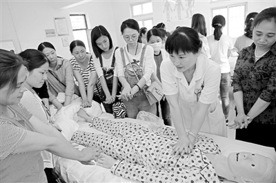 《中國煤炭報(bào)》(5月19日2版)安徽淮北礦業(yè)集團(tuán)以實(shí)現(xiàn)職工轉(zhuǎn)崗就業(yè)為目標(biāo),把轉(zhuǎn)崗與教育培訓(xùn)相結(jié)合。圖為該集團(tuán)岱河礦業(yè)90名女職工在職防職業(yè)培訓(xùn)學(xué)校參加養(yǎng)老護(hù)理實(shí)操培訓(xùn)。 劉敏 攝