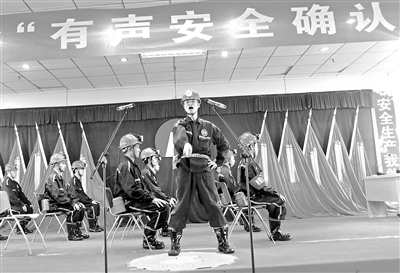 安徽淮北礦業(yè)集團楊柳煤業(yè)公司推進“現(xiàn)場有聲安全確認”管理法,要求施工前、崗位交接、工序轉換等環(huán)節(jié)必須進行有聲安全確認。圖為該公司綜采一區(qū)職工模擬演示有聲安全確認。祝大明 攝