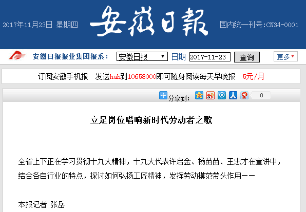 《安徽日?qǐng)?bào)》11版頭條:王忠才:立足崗位唱響新時(shí)代勞動(dòng)者之歌