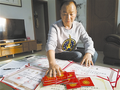 15年時(shí)間里,無(wú)償獻(xiàn)血86600毫升,其中機(jī)采血小板達(dá)到104個(gè)治療量,折合獻(xiàn)血量83200毫升。先后獲得國(guó)家無(wú)償獻(xiàn)血奉獻(xiàn)獎(jiǎng)金獎(jiǎng)、安徽省2015年度“獻(xiàn)血公益之星”、2016年度第五屆淮北市道德模范等榮譽(yù)稱號(hào)。大大小小的榮譽(yù)證書和16本鮮紅的獻(xiàn)血證差不多鋪滿整張桌面……