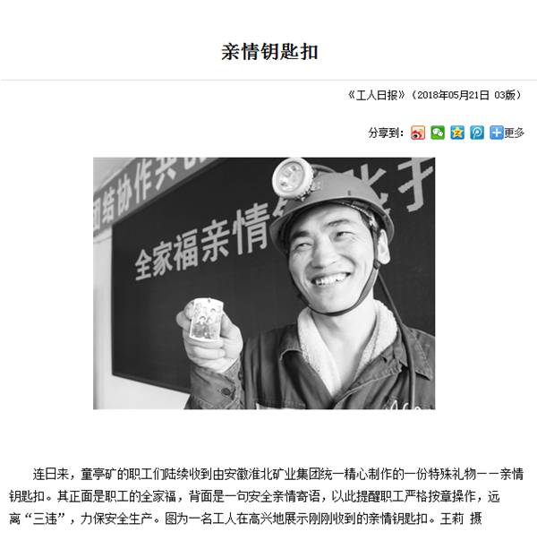 《工人日?qǐng)?bào)》3版:淮北礦業(yè)工會(huì)為一線職工制作親情鑰匙扣