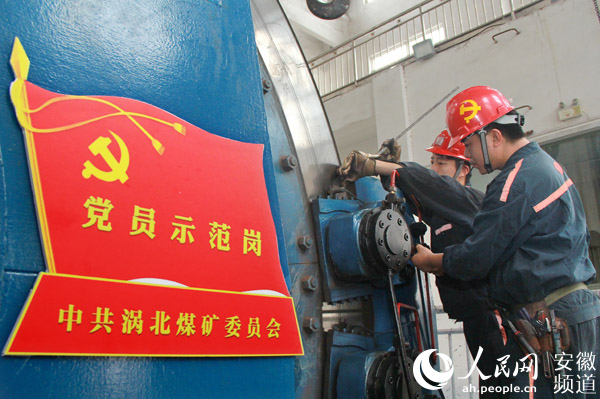 淮北礦業(yè)渦北礦一線黨員在維護主井絞車電機,擦亮“黨員示范崗”名片