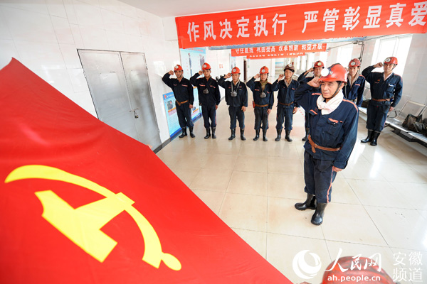 淮北礦業(yè)袁店二礦掘進二區(qū)黨支部組織黨員重溫入黨誓詞
