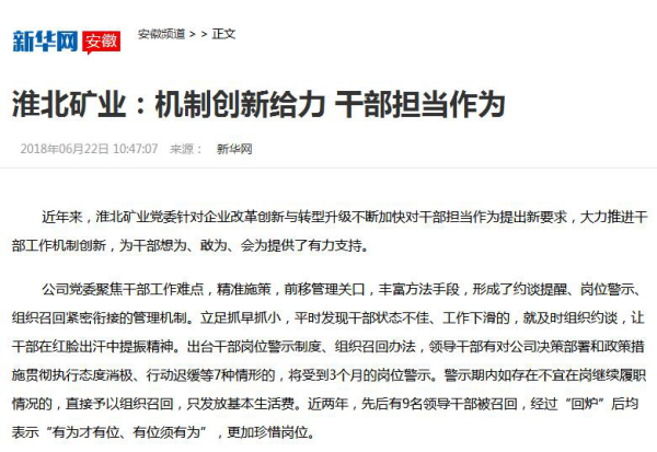 淮北礦業(yè):機(jī)制創(chuàng)新給力干部擔(dān)當(dāng)作為