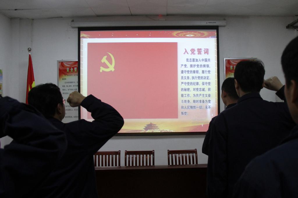 在當日三家支部共建主題黨日活動中,40余名黨員們統(tǒng)一著工裝,佩戴黨徽,共同觀看了《見證初心和使命的“十一書”》之《賀頁朵的“宣誓書”》《尋淮洲的“請戰(zhàn)書”》視頻,填寫了心愿卡,重溫了入黨誓詞,現(xiàn)場交納了1月份黨費,共同演唱《沒有共產(chǎn)黨就沒有新中國》歌曲,再一次接受了黨性的洗禮。