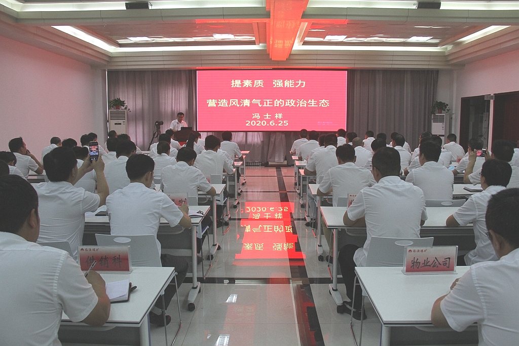 6月25日,臨渙礦舉辦迎“七一”專題黨課報告會,由礦黨委書記為全礦黨支部書記、部分黨員干部作專題授課。