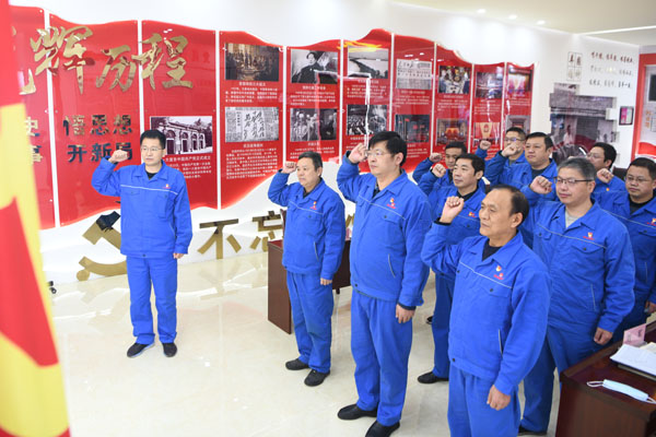 “我志愿加入中國(guó)共產(chǎn)黨,擁護(hù)黨的綱領(lǐng)……隨時(shí)準(zhǔn)備為黨和人民犧牲一切,永不叛黨?!?2月9日,淮北選煤廠黨委理論學(xué)習(xí)中心組將課堂搬到了新時(shí)代文明實(shí)踐中心,班子成員在該廠黨委負(fù)責(zé)人的領(lǐng)誓下,面向黨旗莊嚴(yán)地舉起右手,重溫入黨誓詞,重憶入黨初心,重新接受黨性洗禮。誓言鏗鏘,彰顯了對(duì)黨忠誠(chéng)、為共產(chǎn)主義事業(yè)奮斗終身的決心。