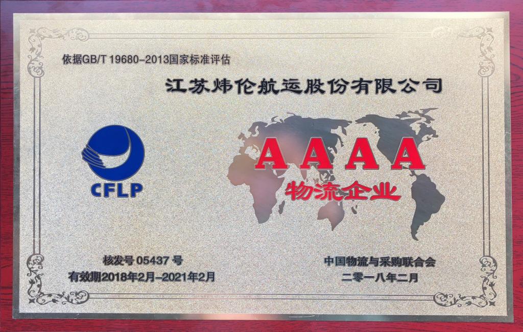 4月2日,在上海舉辦的“第二十五屆物流企業(yè)授牌大會暨物流業(yè)創(chuàng)新發(fā)展論壇”傳來好消息,江蘇煒倫航運(yùn)股份有限公司榮獲“AAAA物流企業(yè)”稱號。