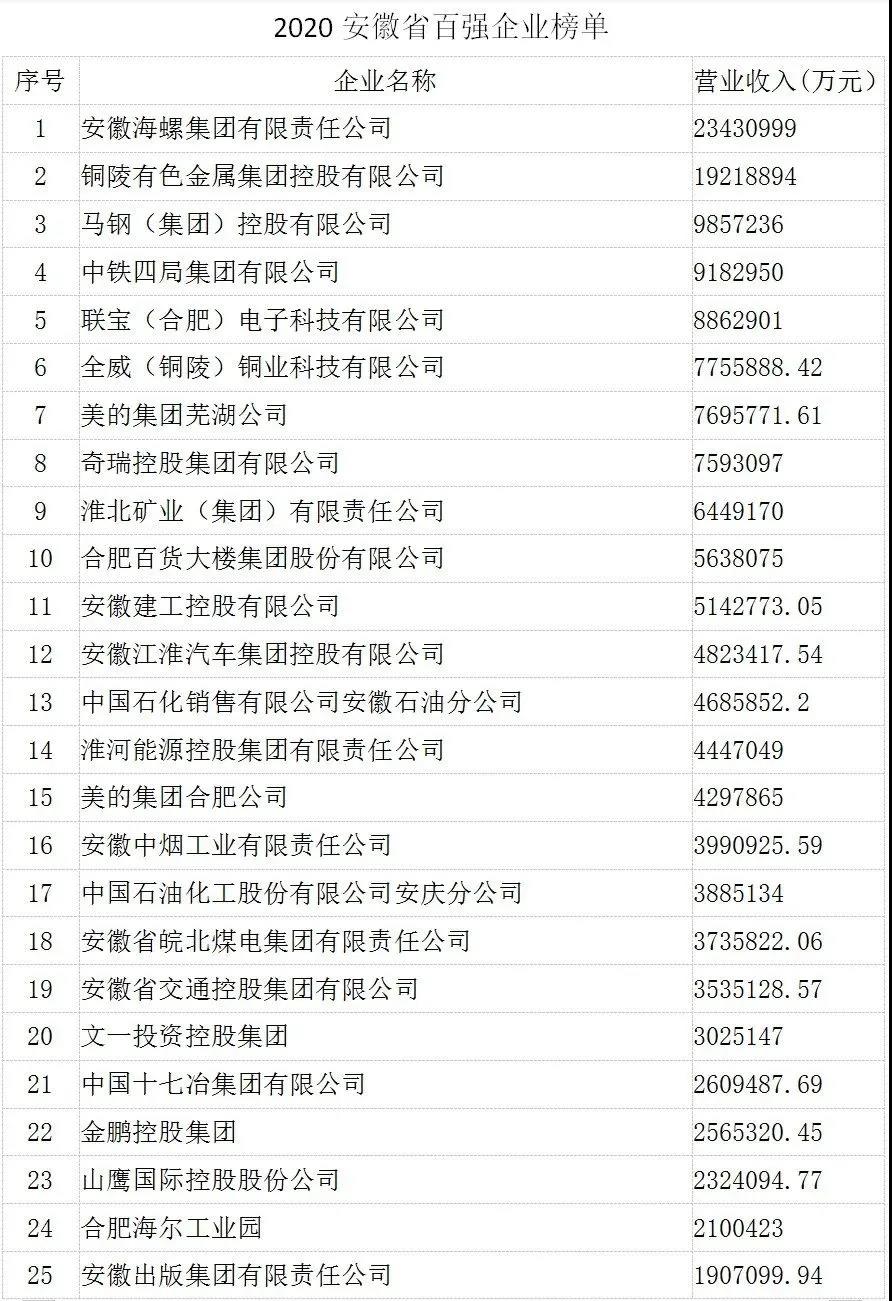 11月8日,“2020安徽省百?gòu)?qiáng)企業(yè)高峰論壇”在安徽省銅陵市召開。會(huì)上,安徽省企業(yè)聯(lián)合會(huì)第16次發(fā)布安徽百?gòu)?qiáng)企業(yè)排序,淮北礦業(yè)集團(tuán)位列第9位。