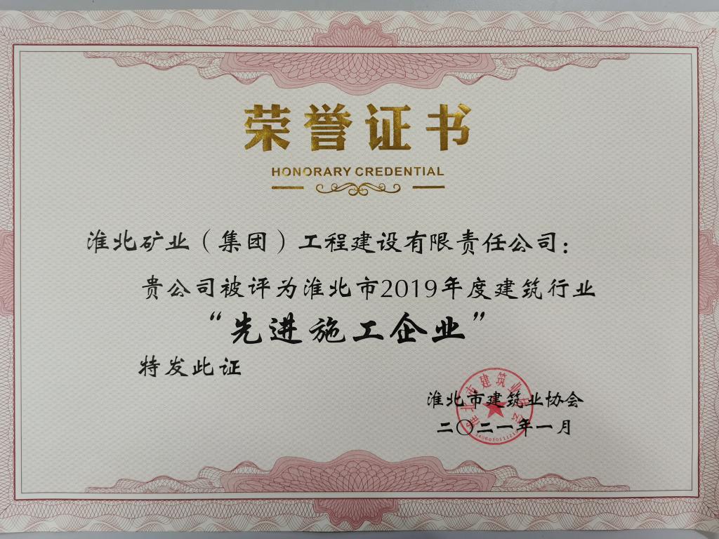 近日,工程建設(shè)公司被淮北市建筑業(yè)協(xié)會授予“2019年度淮北市先進施工企業(yè)”榮譽稱號。這是該公司自2017年首次榮獲該獎項后,已經(jīng)連續(xù)三年獲得此項殊榮。