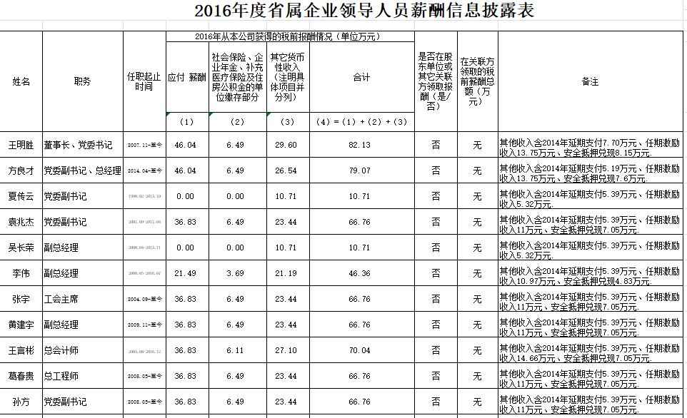 淮北礦業(yè)集團2016年度省屬企業(yè)領(lǐng)導(dǎo)人員薪酬信息披露表
